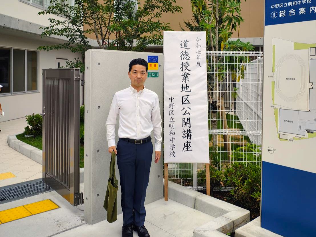 明和中学校で開催された「道徳授業地区公開講座・体験授業」に参加しました。道徳は従来の「道徳の時間」から教科として位置づけられ、現在は年間35時間の授業が中学校で全面的に実施されています。(2025/07/12)